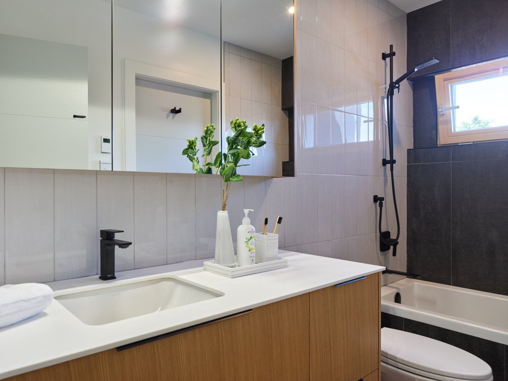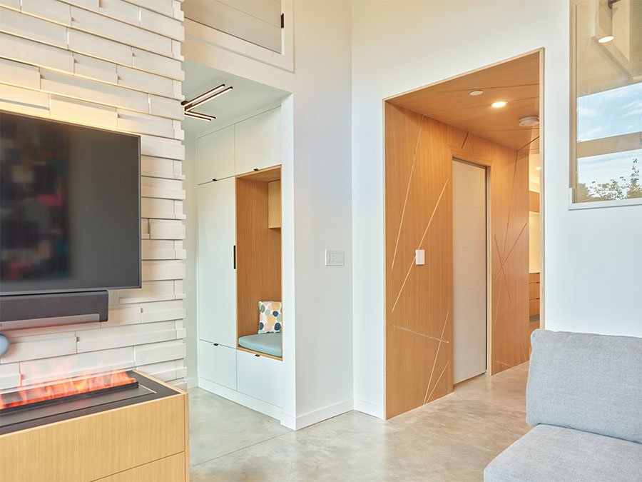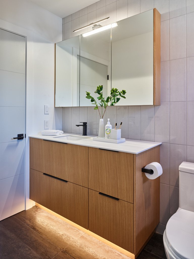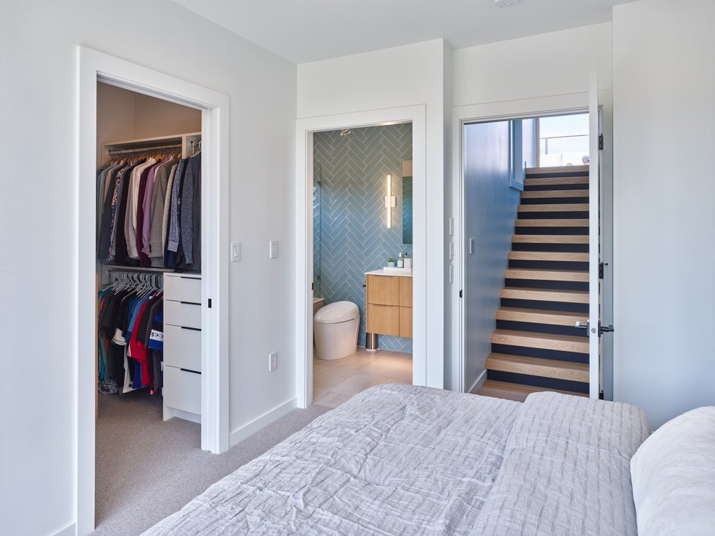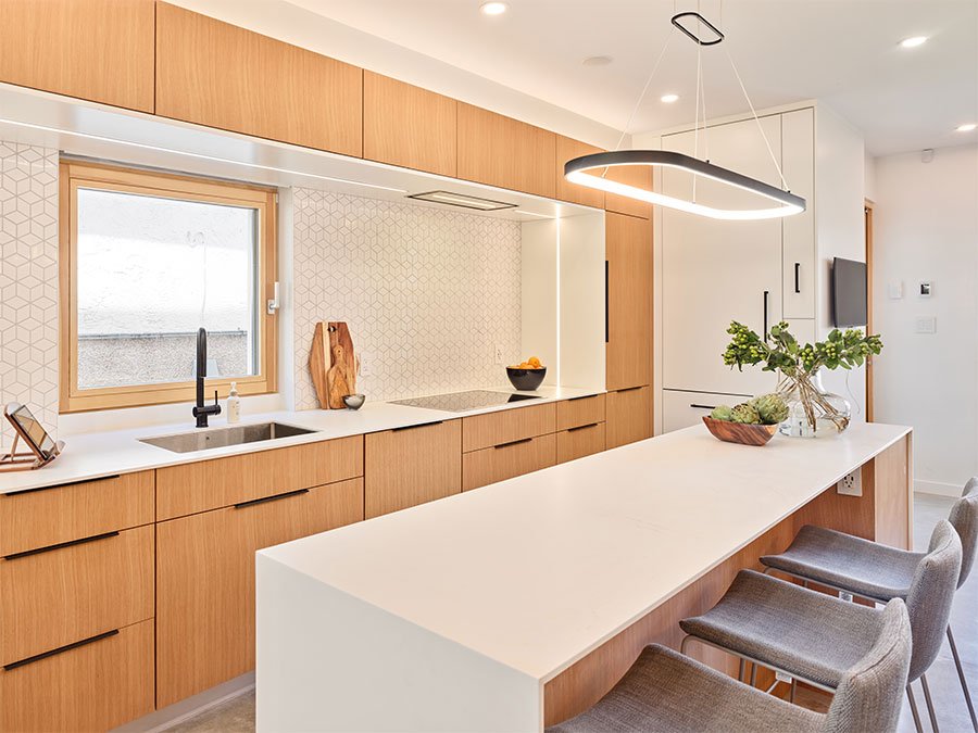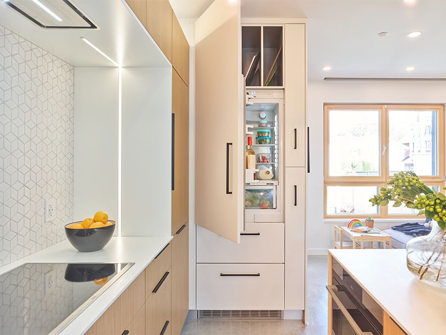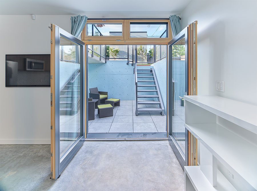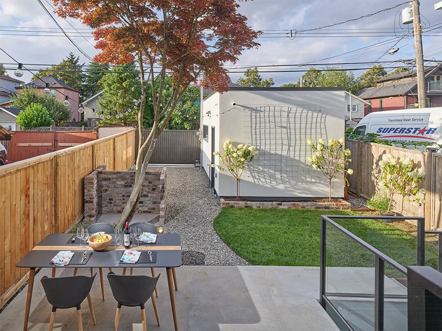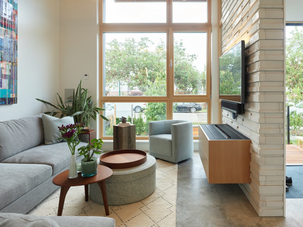 he parameters of this project were different: slotted on a narrow Vancouver lot with a frontage of 25’, located in a peat-bog zone where the soils can only be “piled” into to anchor a structure, this project presented a variety of challenges. Designed by Nick Bray Architecture, this Certified Passive House presented the perfect storm of challenges. It is the only house in the peat-bog zone that has a basement, therefore clever sequencing and waterproof measures had to be planned to ensure that the basement portion of the home would not be breached by the fluctuating water table. Furthermore, the entire structure needed to be air-tight to meet Passive House requirements, while being heavily insulated to ensure heat was retained. Equipped with photovoltaic panels on the roof-top, the home does not use any fossil fuels for heating or cooling.