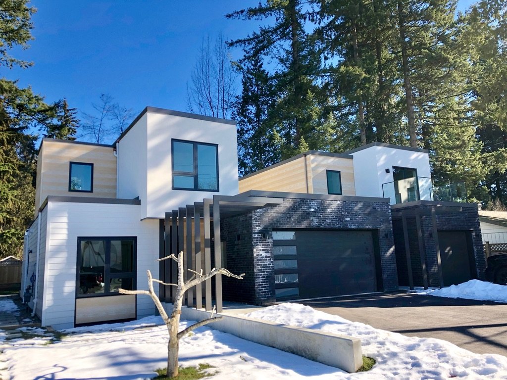 Located in Pitt Meadows, this project is unique to the neighbourhood and can be spotted from afar due to its distinct outline. The utilization of a SIP system has given the homeowners an energy-efficient home with an income-producing unit next door.