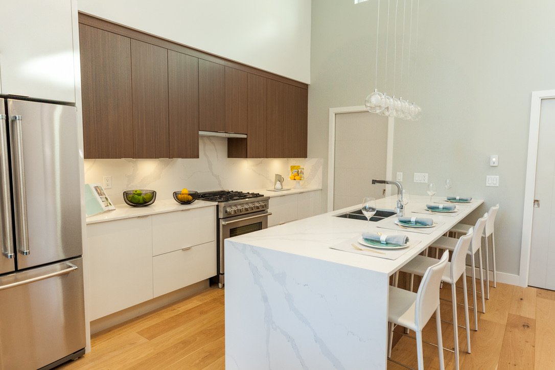 Tapping into the Structural Insulated Panels (SIP) system to build the outer walls of this unique duplex, the team at Nick Bray Architecture ensured this home was architecturally eye-catching while maximizing space and functionality.