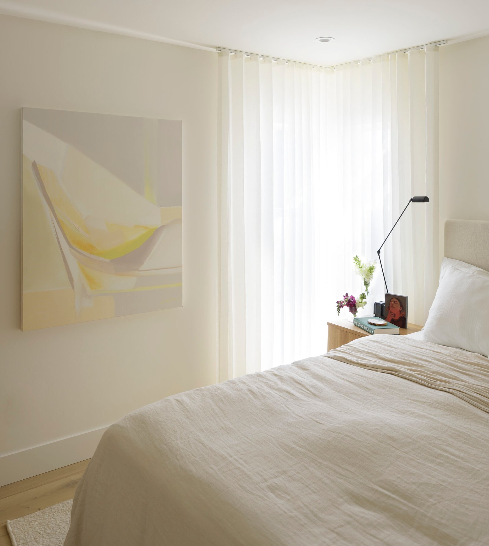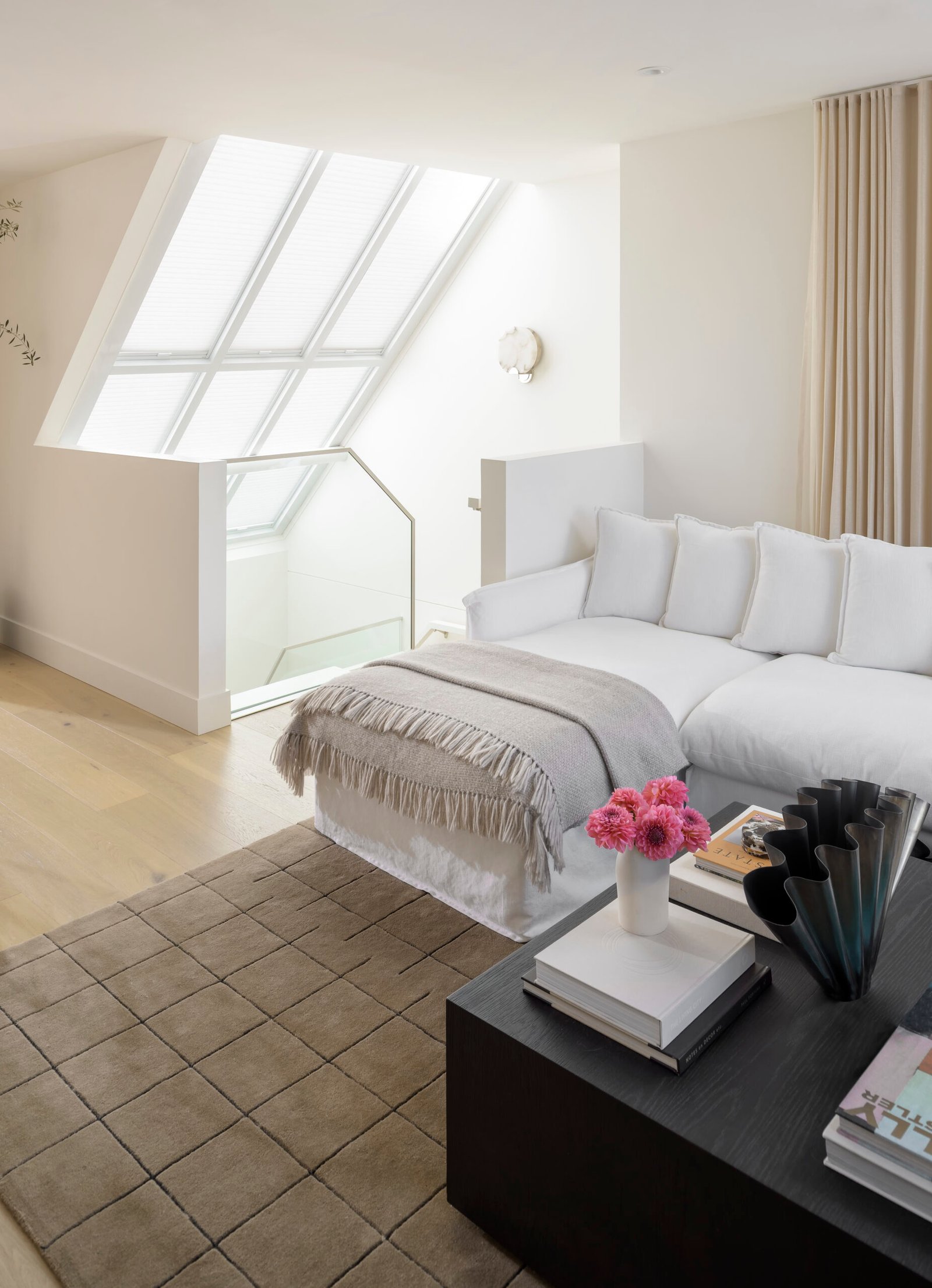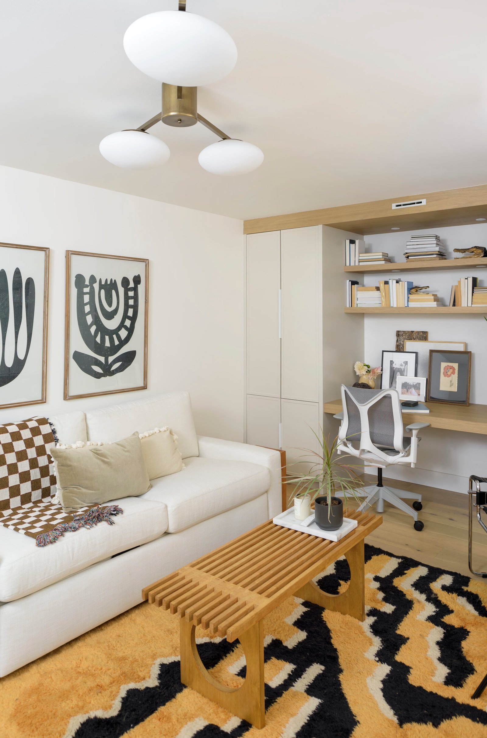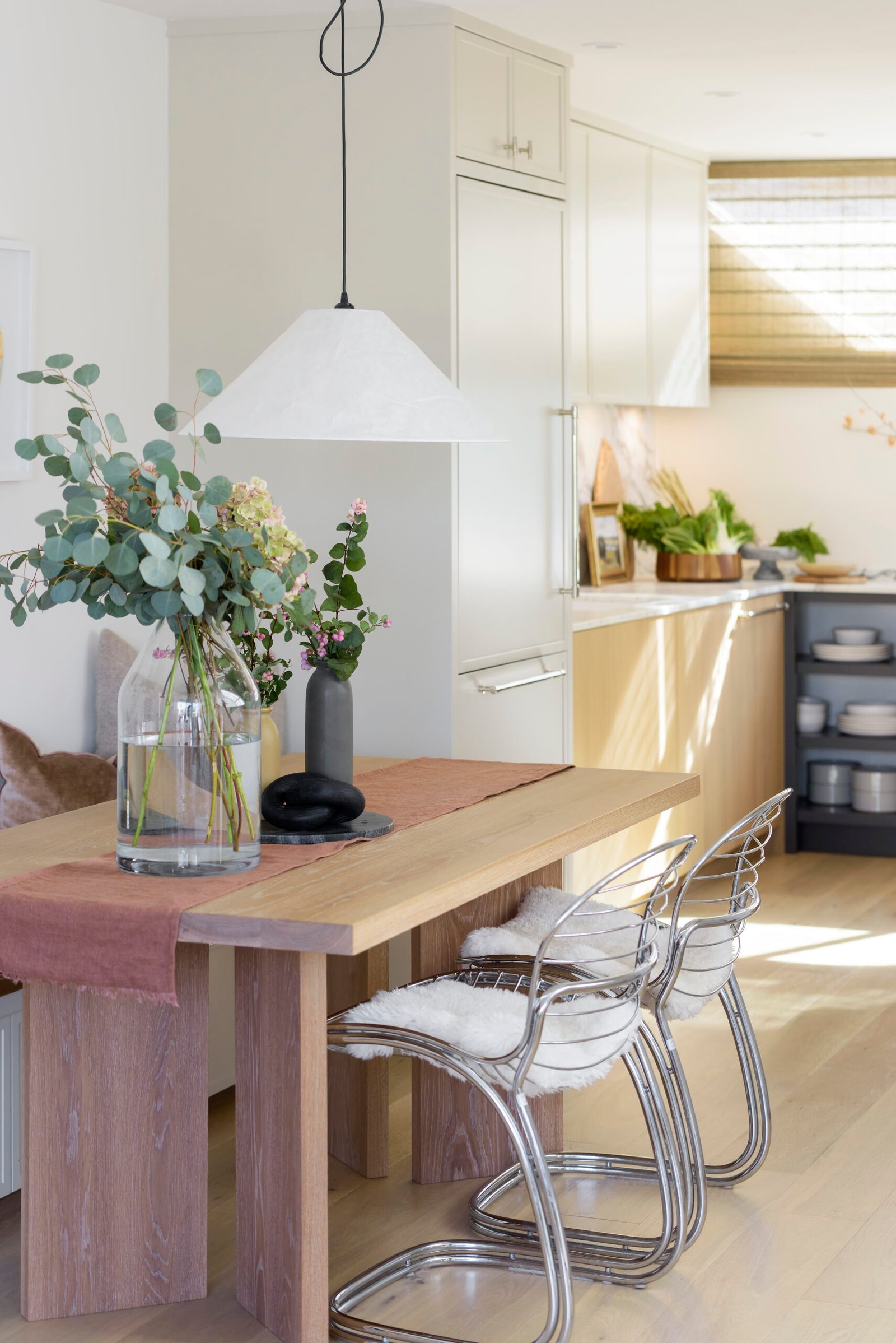 The design team at Jamie Banfield Design took this project to the next level by opening up walls between the living and kitchen areas, re-vamping the entire kitchen layout, and re-drawing the principal bedroom layout with an ensuite, while taking advantage of the skylights and ample natural light. A heat pump was added on the roof to provide air-conditioning and heat while the existing wood-burning fireplace was revived for décor.